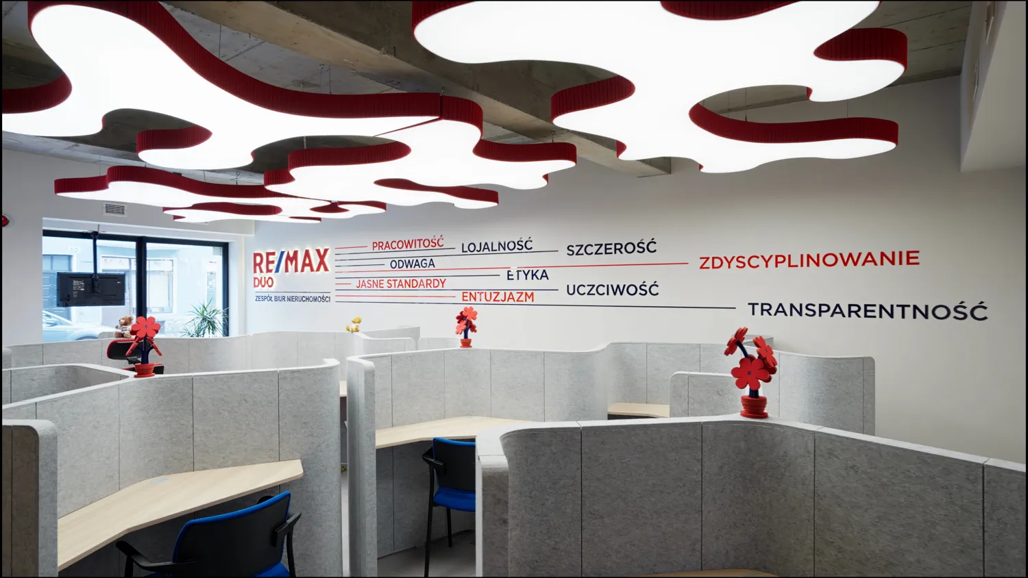 W biurze Re/Max w Nowym Targu odpowiadaliśmy za kompleksową realizację wnętrza na podstawie projektu zewnętrznego studia. Kluczowe było precyzyjne odwzorowanie założeń projektowych i koordynacja wszystkich etapów prac – od zamówień, przez montaż, po wykończenie. Finalny efekt to estetyczna, funkcjonalna przestrzeń, gotowa do codziennej pracy, w której design idzie w parze z komfortem.