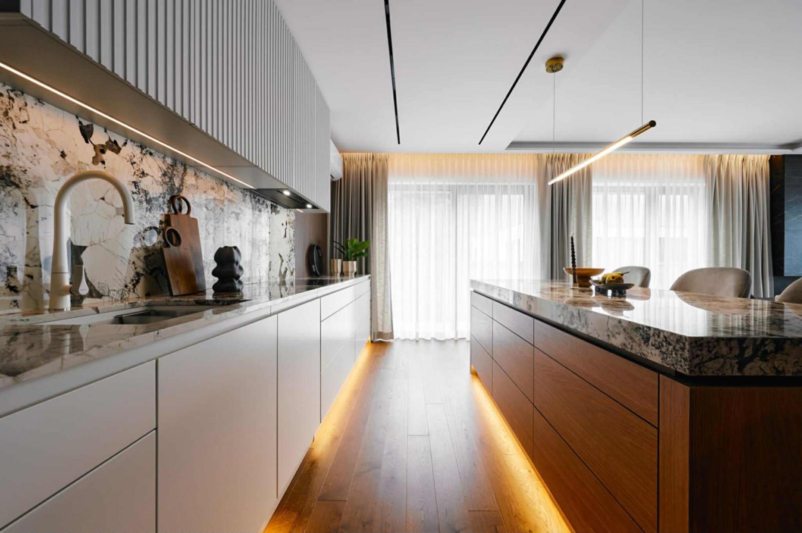 Zrealizowaliśmy apartament na ul. Odlewniczej zgodnie z indywidualnym projektem wnętrz. Klient oczekiwał wykończenia na poziomie premium, z pełnym poszanowaniem koncepcji projektanta. Dzięki naszej koordynacji i dopracowaniu detali udało się uzyskać spójne, eleganckie wnętrze — gotowe do zamieszkania bez poprawek, opóźnień i stresu.